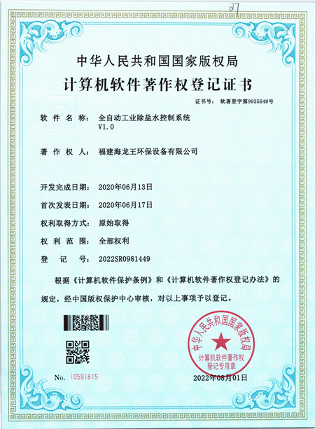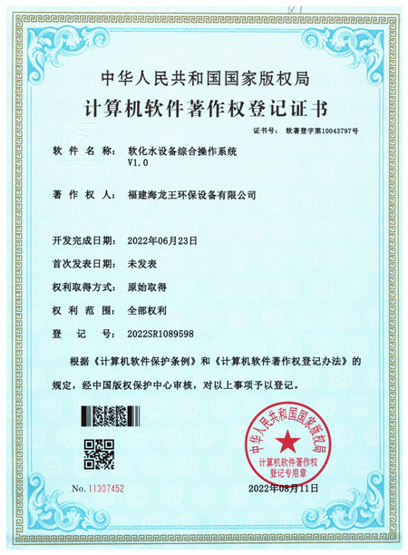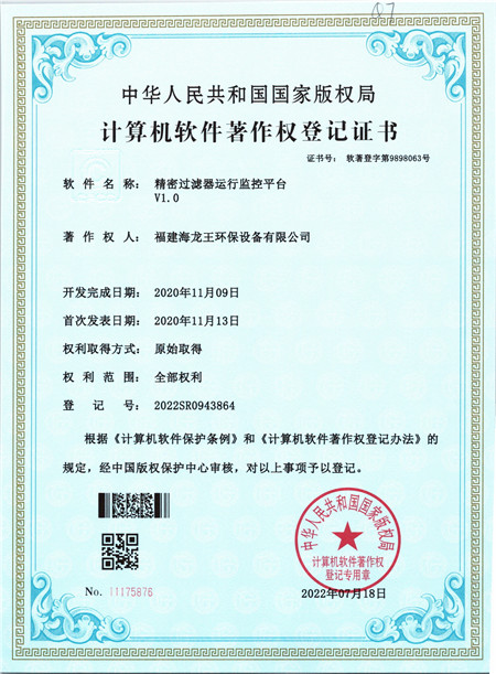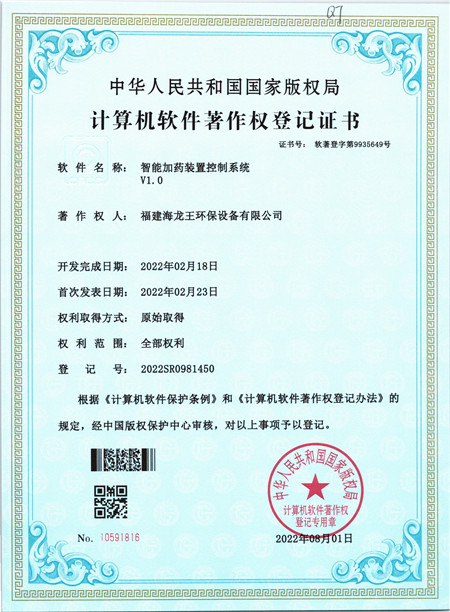 您現在的位置:福建海龍王環保設備有限公司 >> 關于我們 >> 軟著與專利
